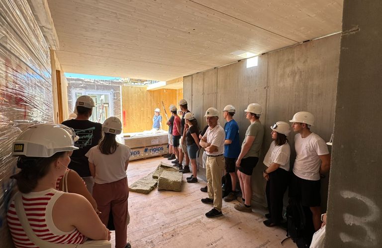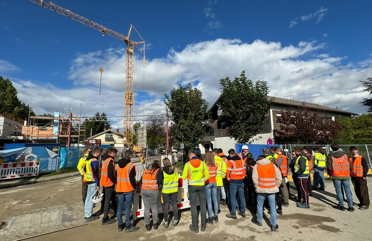 Besuch auf der Baustelle der Firma Erl. Diese Bauen das gesammte Gebäude größtenteils aus Fertigteilen.