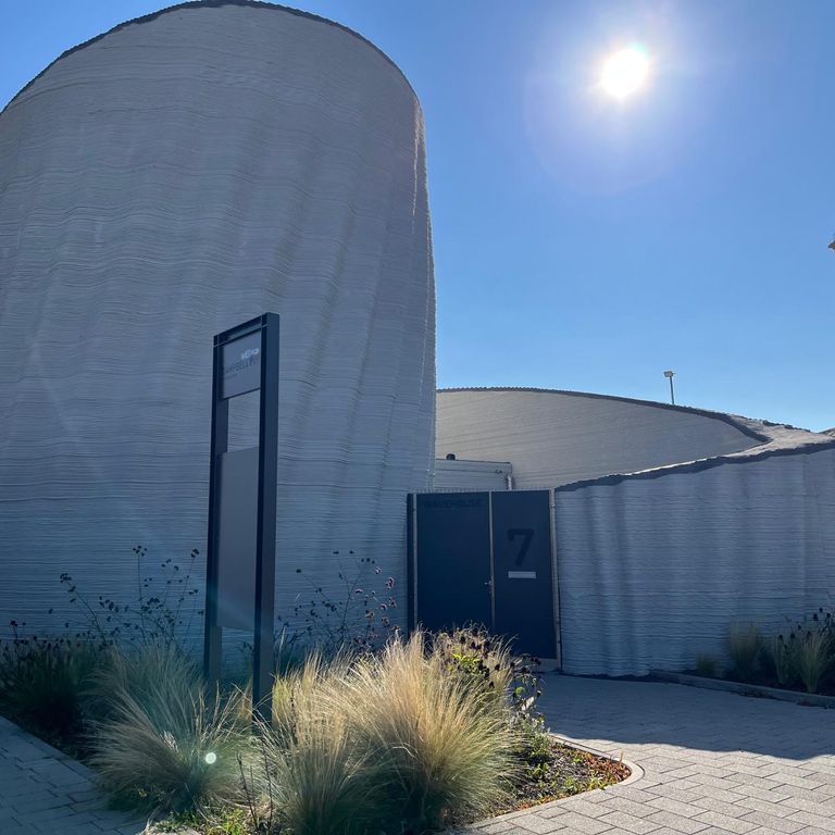 Auch neuartige Bauweisen blieben bei dieser Exkursion nicht unentdeckt. Es wurde sich von den Studierenden ein Haus komplett aus gedrucktem Beton angeschaut.